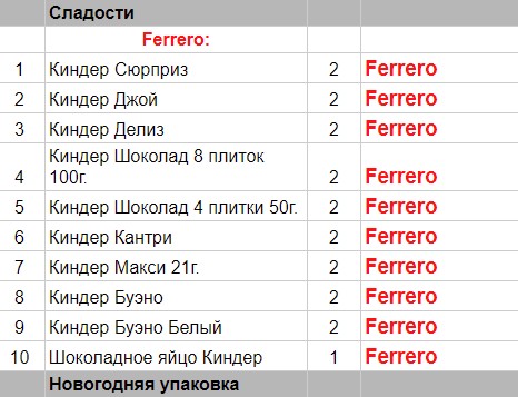 Опубликовано в Составы подарков
